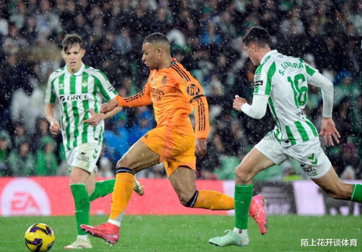 在主裁判吹响比赛开始哨声后,皇家贝蒂斯就在主场球迷的助威声中,拉开架势和皇马对攻,第10分钟姆巴佩前场策动进攻,一脚斜塞将球传给了杀入禁区的门迪,后者不停球横敲门前,中路包抄的迪亚斯轻松推射建功,帮助皇马取得了1-0的领先,连续传递19脚破门,创造了皇马本赛季客场之最。